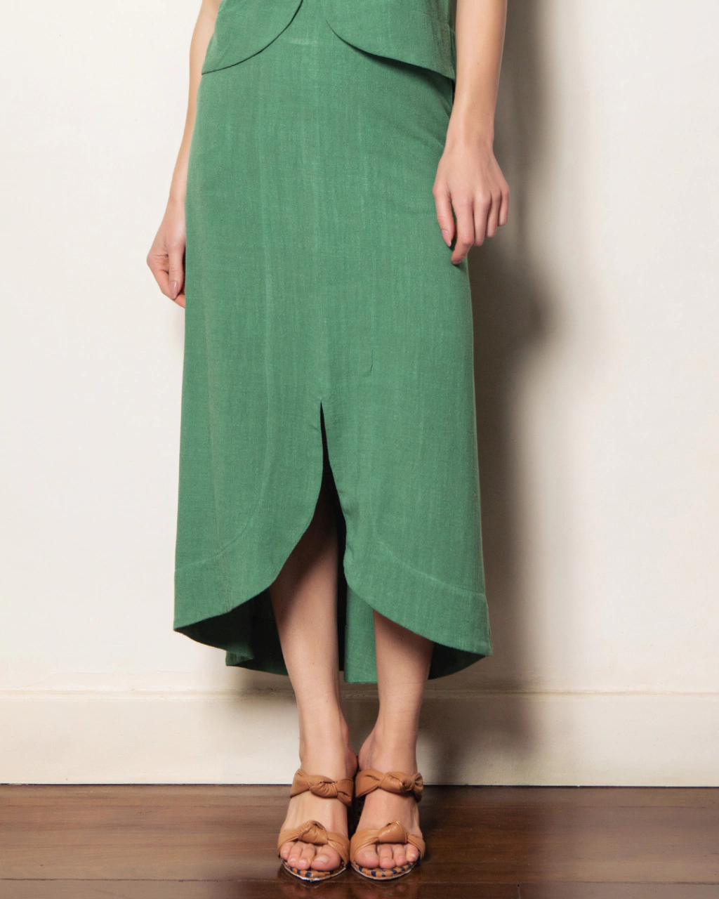 Saia midi com bolso e recorte na frente