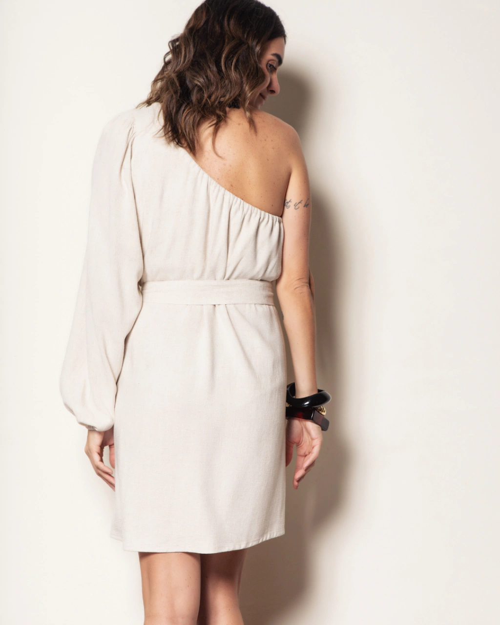 Vestido curto com uma manga longa bufante