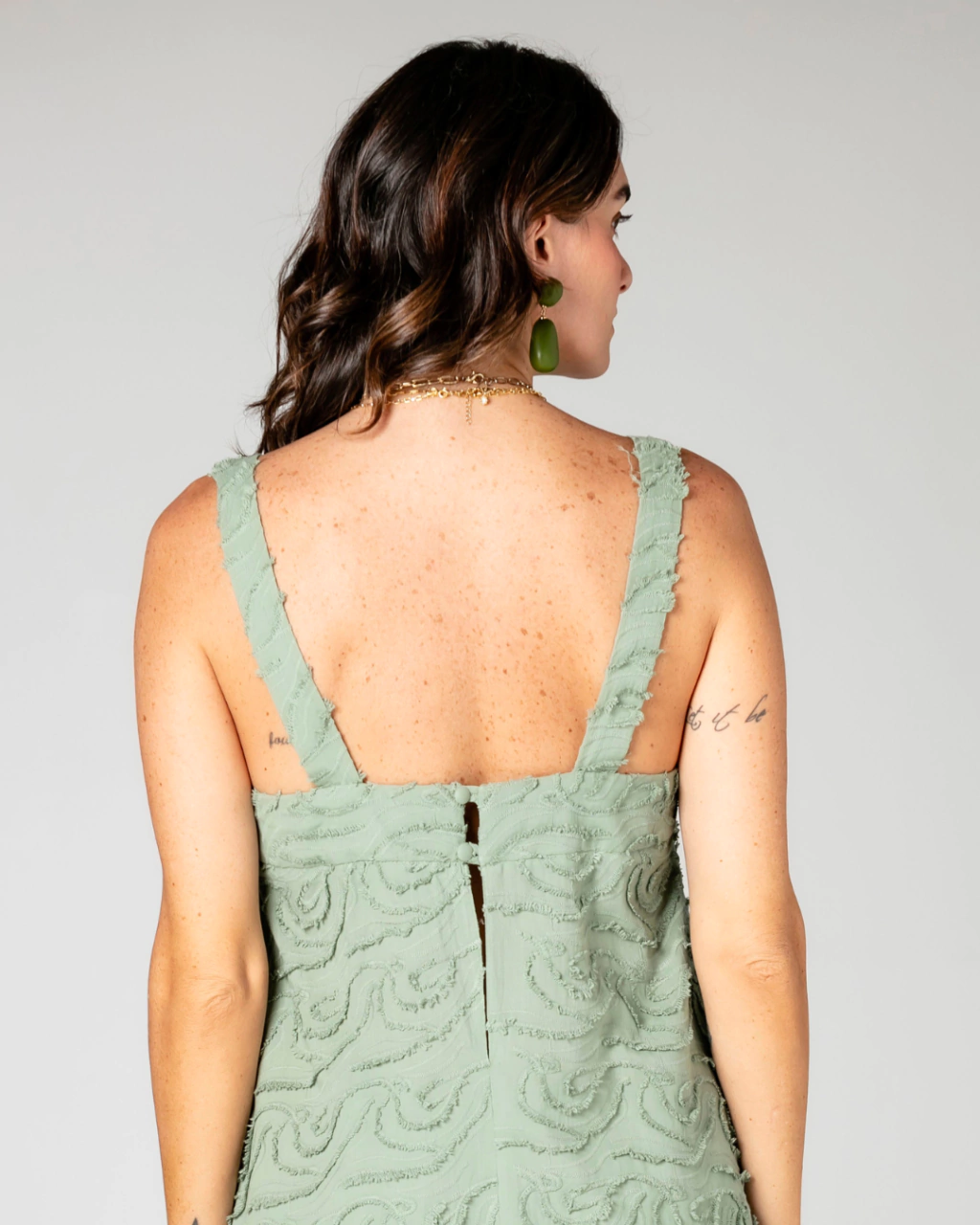 O Vestido Lore é a escolha perfeita para quem busca elegância com um toque artesanal. Feito em tecido 100% algodão, ele se destaca pela textura bordada e desfiada no estilo shivani, trazendo um visual sofisticado e único em um tom de verde belize.